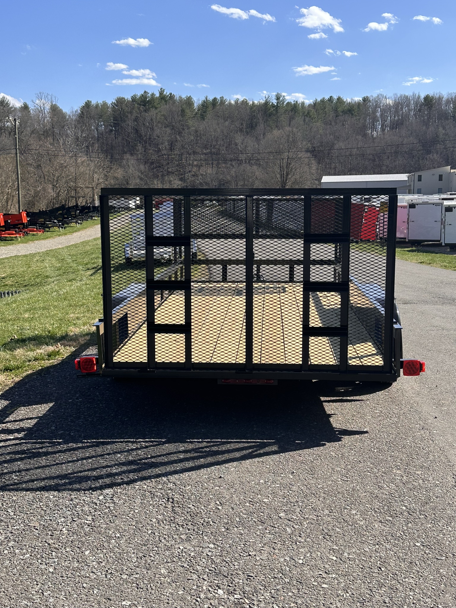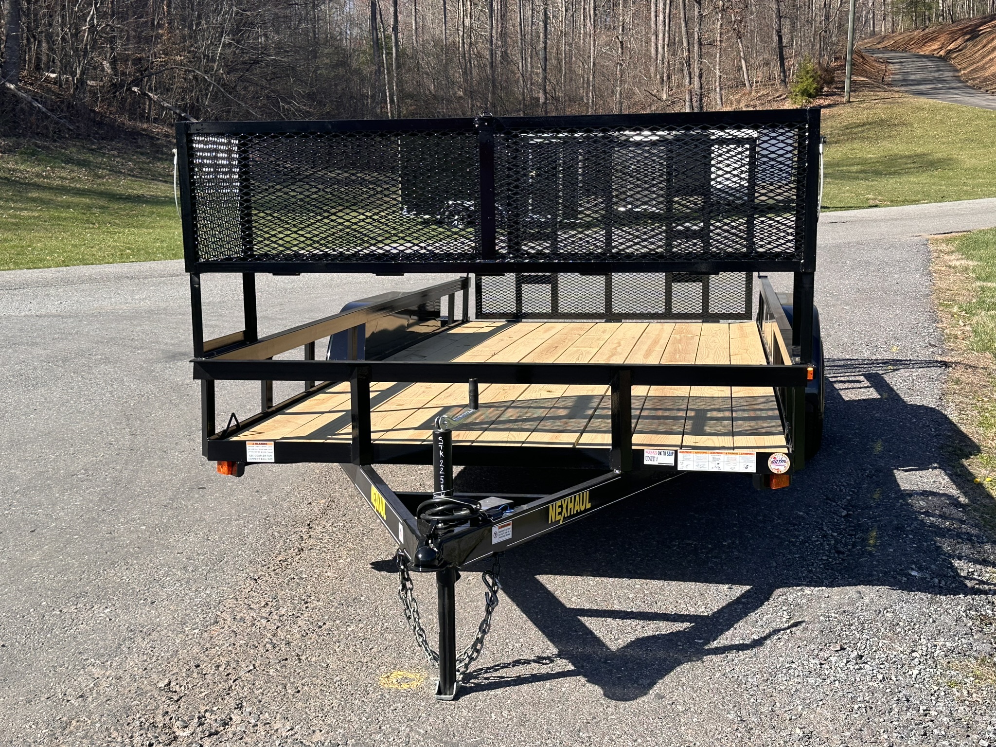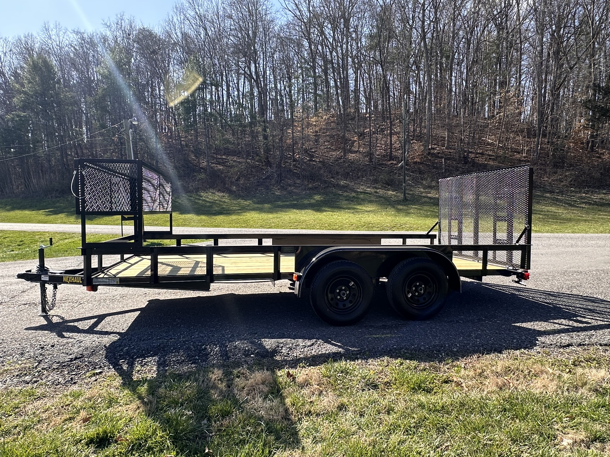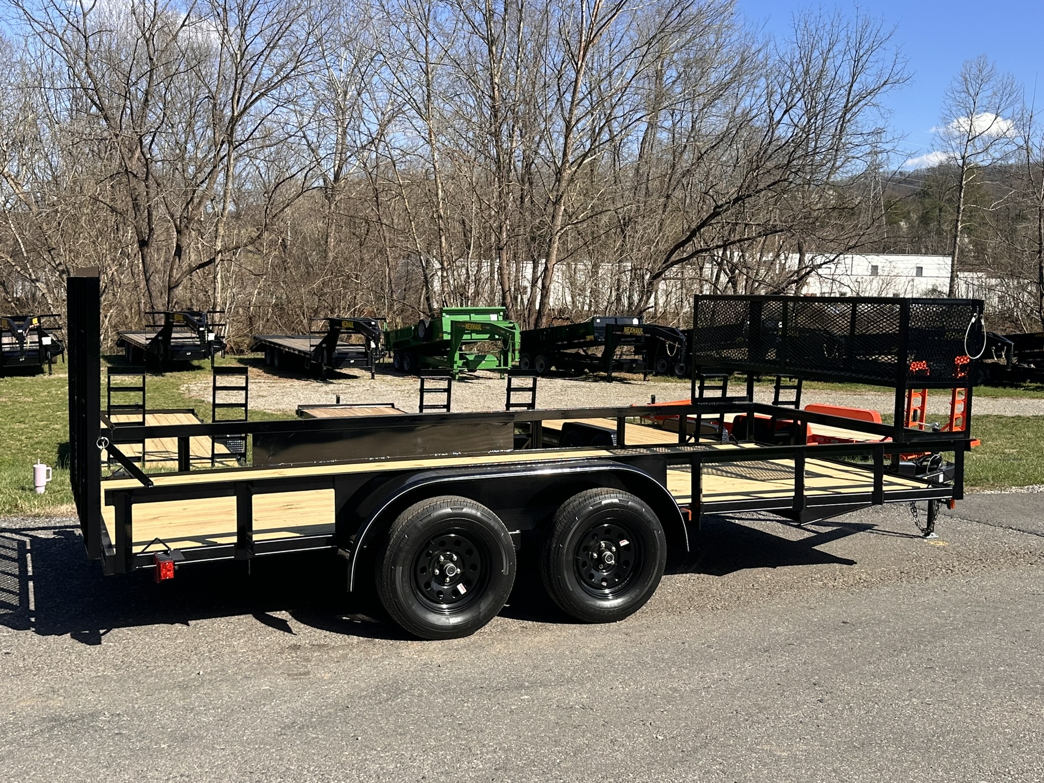 The 7x16 7K Landscape Trailer from Nexhaul's Landscape Trailer Series is built to handle all your heavy-duty landscaping needs with a bonus feature—a massive front basket for extra storage and convenience. This trailer comes equipped with a 20x20x80 lockable tongue box and a spare tire mount (spare tire sold separately), perfect for keeping tools and gear secure. With a durable channel frame and wrap-around tongue, 16” O/C cross members, and a 2’ treated wood dove tail, it's designed for strength and easy loading. The 2” treated wood floor provides a stable surface for hauling, while the 15” radial tires and 15" steel 5-bolt wheels ensure reliable towing. Additional features include electric brakes with a breakaway system, DOT-approved LED lights, a 2000# top wind jack, and (2) 3,500 lb. EZ Lube axles. The smooth teardrop fenders and primed and painted frame provide both durability and style, while the 7-way RV electric plug completes the setup. Whether you’re hauling heavy equipment or extra gear, the 7x16 7K delivers all the power and storage you need.