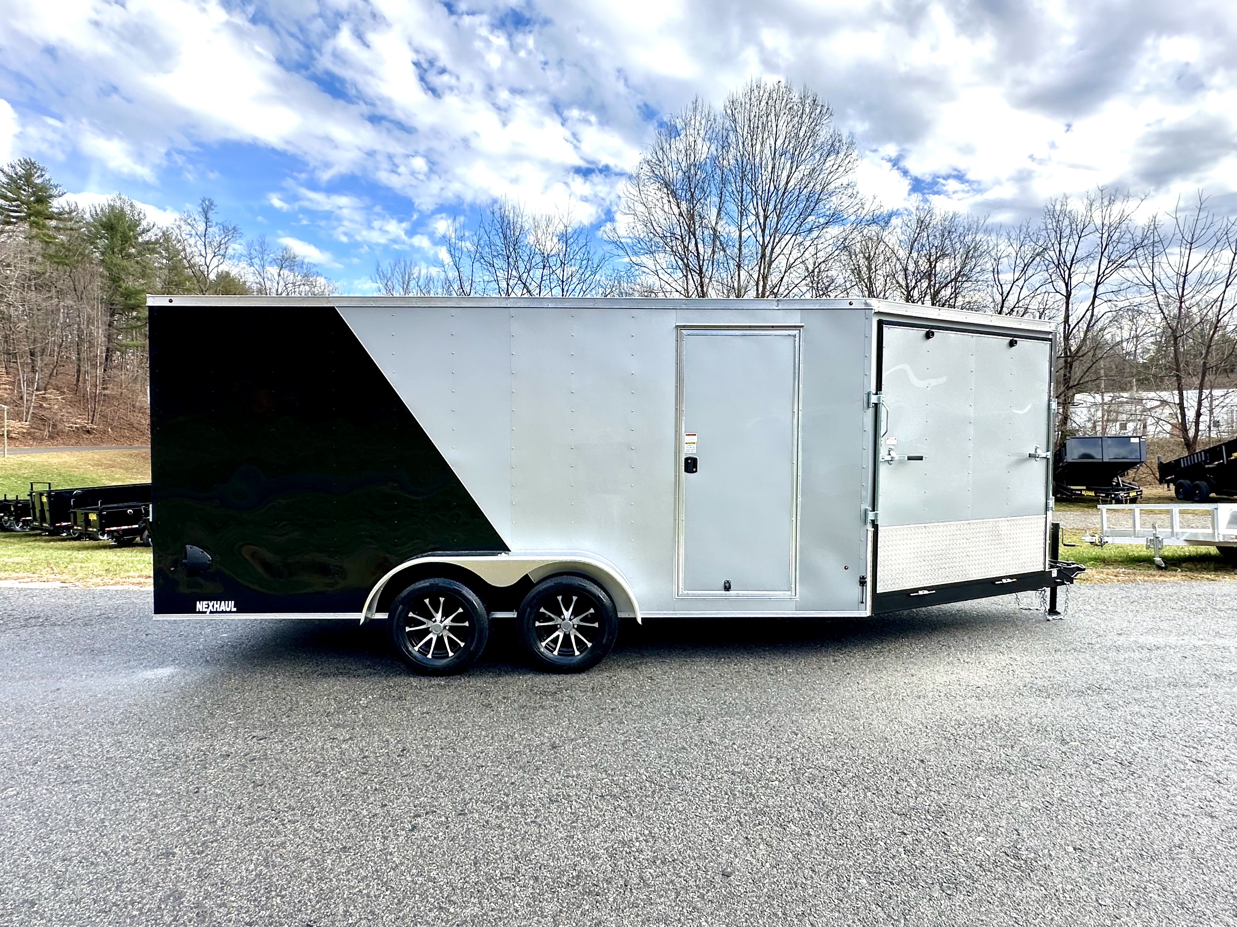 The Nexhaul Super Snowman Series is built with style. Featuring a 6" tongue and V-nose with a 75" ramp, this trailer offers seamless loading and unloading. Built for durability, it boasts 3/4" engineered flooring with a 15-year warranty, a .030 aluminum exterior, and a one-piece aluminum roof. The 16" on-center construction for the floor, walls, and ceiling ensures a sturdy build, while electric brakes on 3500LB EZ Lube axles provide safe and reliable performance. With a 7000LB GVW, 78" interior height, spring-assist ramp door, and ramp flap extension, this trailer is versatile and functional. It includes features like plastic side flow vents, wood walls, and LED lighting, complemented by a 32" side door with flush lock and aluminum fenders. Available in a variety of colors, it’s ready for your next adventure. Call for availability!