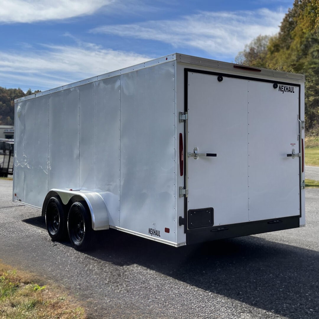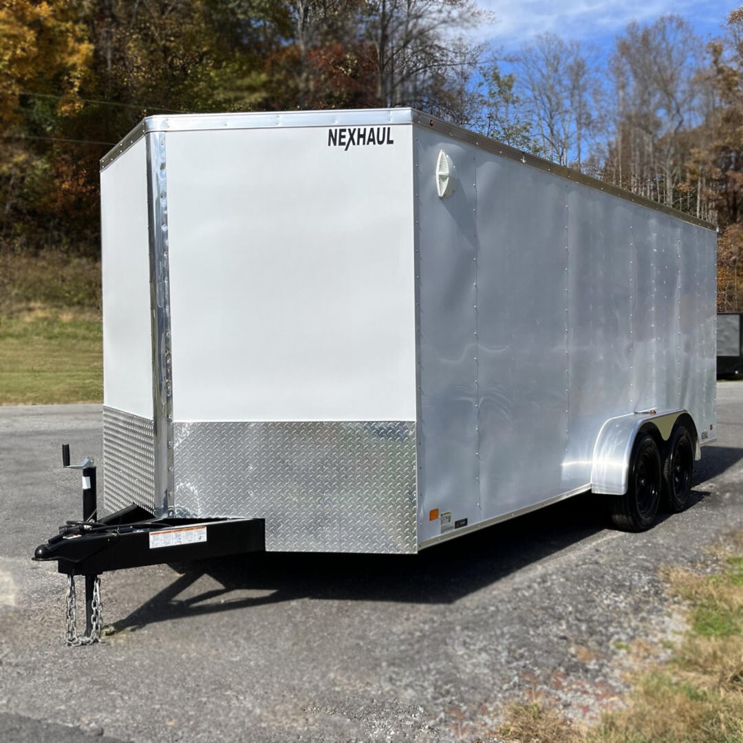 The Nexhaul Bullet Series is built for serious tasks with a rugged 6" frame featuring a triple-tube tongue and an option for white wheels at no additional cost. Engineered for durability, it boasts a 3/4" engineered floor with a 15-year warranty, a .030 semi screwless aluminum exterior, and 16" on-center floor, walls, and ceiling construction. The one-piece aluminum roof and 24" aluminum tread plate stone guard provide superior protection. With 3500LB EZ Lube axles, electric brakes on all wheels, 15" radial tires, and a 7000LB GVW, this trailer delivers reliable performance. Its 6' interior height and 5'6" rear door opening (with additional heights available) ensure easy access and flexibility. Featuring a spring-assist ramp door, 32" side door with flush lock, plastic side flow vents, wood walls, LED lights, a 12V LED interior light, a 2-5/16" ball coupler, a 7-way RV plug, and a breakaway safety kit, this V-nose trailer is equipped to take on any job with confidence.