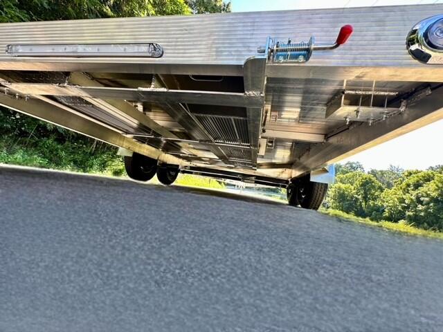 The 18AL 7K from the Nexhaul Aluminum Series is a powerhouse designed for those who demand strength, reliability, and versatility. With a 7,000 GVW capacity, this trailer is built to haul with confidence, featuring a durable aluminum frame and decking that keeps weight down while standing up to tough tasks. It’s equipped with 15" radial tires and aluminum wheels for smooth, efficient towing, while the heavy-duty slide-out ramps make loading and unloading easy. The trailer also includes a 2 5/16" coupler, manual tongue jack, safety chains, and a beaver tail for enhanced usability. With torsion axles and electric brakes, it provides a smooth and controlled ride, while DOT-approved lighting ensures visibility and safety on the road. The aluminum stop rail and recessed D-rings offer added convenience and security, making the 18AL 7K the ultimate choice for serious haulers.