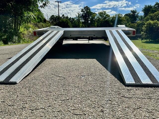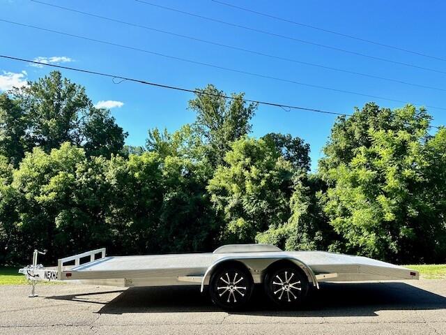The 20AL 10K from the Nexhaul Aluminum Series is built for maximum hauling capacity and exceptional durability, boasting a 10,000 GVWR. Its robust aluminum frame and decking provide both lightweight performance and long-lasting strength, while the 15" radial tires and aluminum wheels ensure a smooth and reliable towing experience. Designed for versatility, it features heavy-duty slide-out ramps, a 2 5/16" coupler, and a manual tongue jack, making it easy to load and secure your cargo. The torsion axles and electric brakes deliver a stable, controlled ride, and the aluminum stop rail and recessed D-rings keep your load secure. A beaver tail design, breakaway box, DOT-approved lighting, safety chains, and aluminum fenders complete the trailer’s high-performance profile, making the 20AL 10K perfect for demanding hauling tasks.