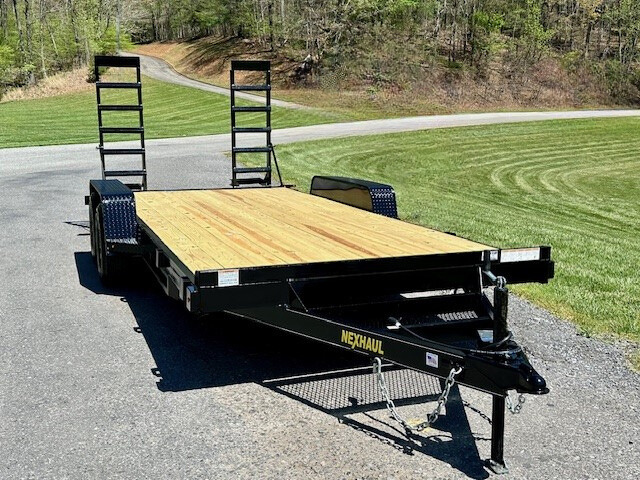 The Nexhaul Equipment Trailer Series is built for strength and reliability, featuring a 10,000 LB GVW to handle heavy-duty loads with ease. The 5" channel frame and wrap-around tongue ensure a solid foundation, while 3" channel cross members spaced 16" on center add extra support. The 2' treated wood dove tail and 2" treated wood floor offer a durable surface for transporting equipment. With a 2-5/16" coupler, heavy-duty safety chains, and flip-up 20" x 60" ramps, loading and unloading is made simple. The trailer is equipped with stake pocket tie-downs, ensuring secure cargo transport. 15" radial tires, a 5000 LB tongue jack, and (2) 5200 LB EZ Lube axles with slipper spring suspension offer smooth towing and added stability. Diamond plate fenders, LED lighting, and a 7-way RV plug enhance the trailer’s functionality and visibility. Powder-coated for extra durability, the Nexhaul Equipment Trailer Series is a dependable choice for all your hauling needs.