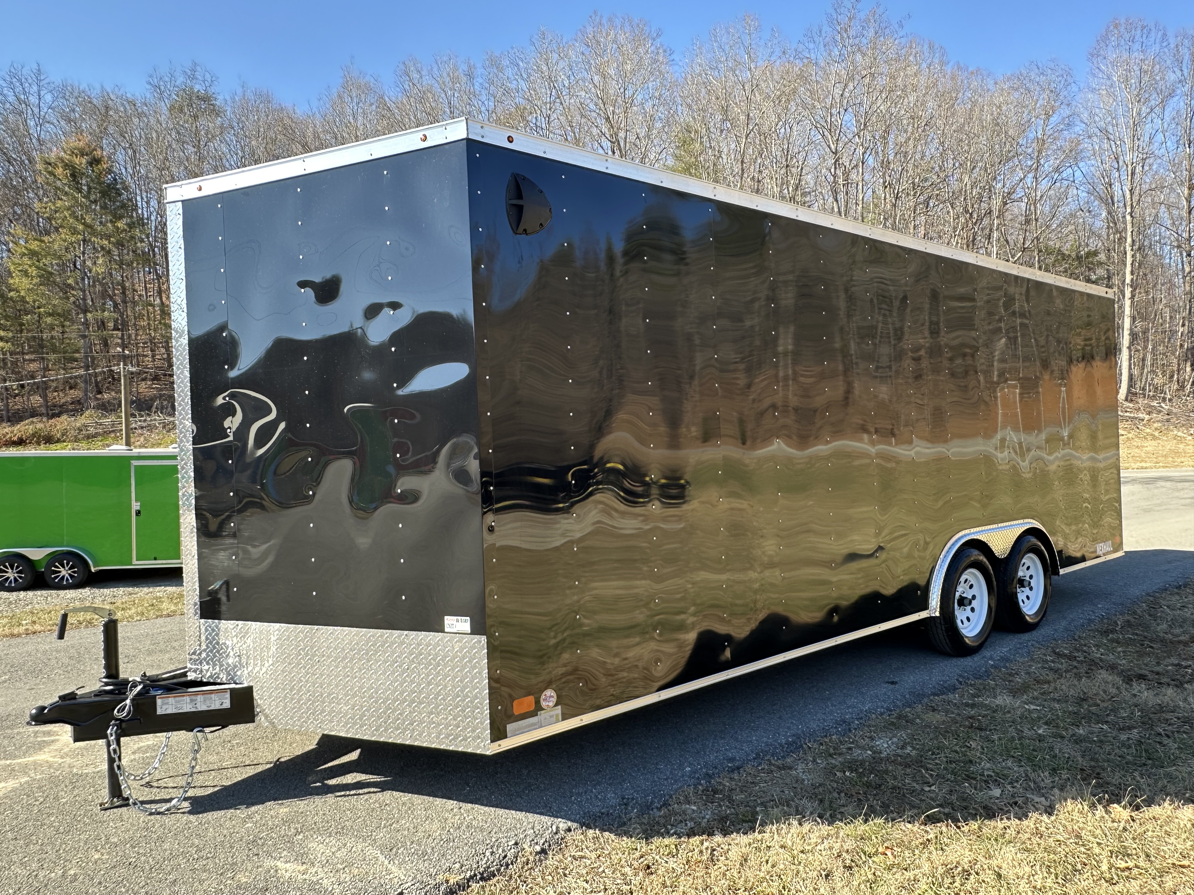 The 8.5x20 7K trailer from the Magnum Series offers dependable performance and practical features, perfect for various hauling needs. Built on a sturdy primed and painted frame, it features two 3,500-lb 4" drop brake axles, EZY lube hubs, and radial tires for a smooth ride. Its rugged design includes 3/4" wood flooring, 16" O/C walls and floors, and 24" O/C roof bows, ensuring durability. The trailer also boasts .024 gauge screwed exterior aluminum, an aluminum tread plate stone guard, and a one-piece aluminum roof with high-tech sealant for long-lasting protection. Convenience meets functionality with a 32"x72" side door with a bar lock, a rear ramp door, 4 installed D-rings, DOT-approved lighting, a 7-way electrical plug, and a 2,000-lb manual tongue jack. Additional highlights include plastic side flow vents, aluminum tread plate fenders, a V-nose with tread plate, and a 78" interior height. Available in multiple colors, this trailer is built to handle the job with style and reliability.