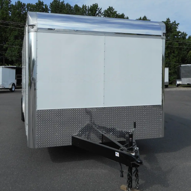 Built tough and ready for action, this trailer packs serious strength with its 10,000LB GVW, dual 5200LB E-Z Lube axles, and electric brakes on all four wheels for total control. The 78" interior height, 16" on-center floor, walls, and ceiling, and 3/4" engineered flooring ensure rock-solid durability, while the semi-screwless .030 aluminum exterior and one-piece aluminum roof deliver a sleek, rugged look. Loading is effortless with a spring-assist ramp door with ramp extension and a beavertail, plus four installed D-rings keep your cargo secure. The flat front design, aluminum fenders, chrome corners, and aluminum tread plate stone guard add bold style and protection. A 48" RV-style side door with a flush lock provides easy access, while the 7-way RV plug, breakaway safety kit, and 2-5/16" ball coupler make towing a breeze. Rolling on 15" radial tires and steel wheels, this trailer is built to perform, and with E-Track, an escape door, and a 12-volt dome light, it’s ready for whatever the job demands.