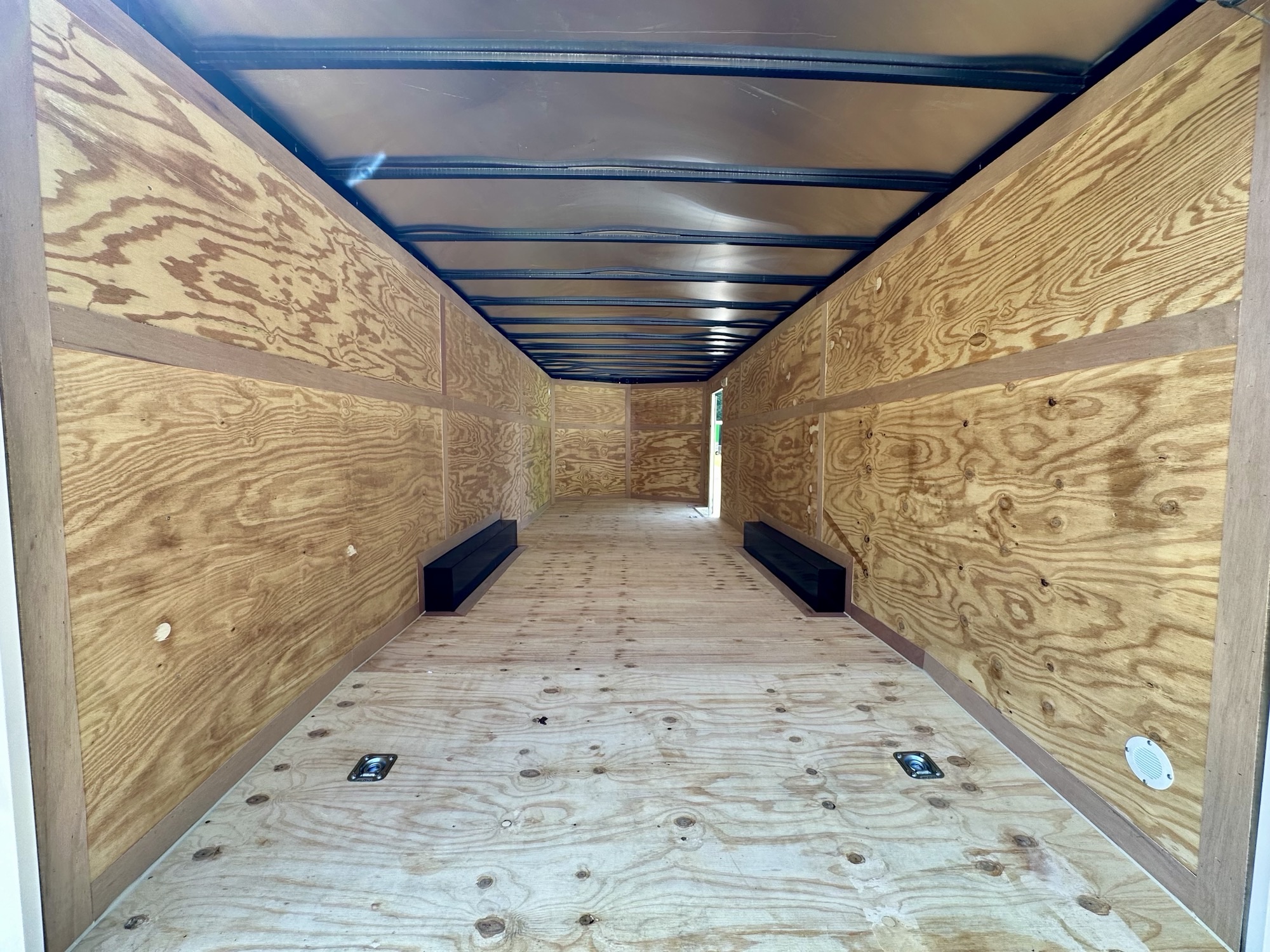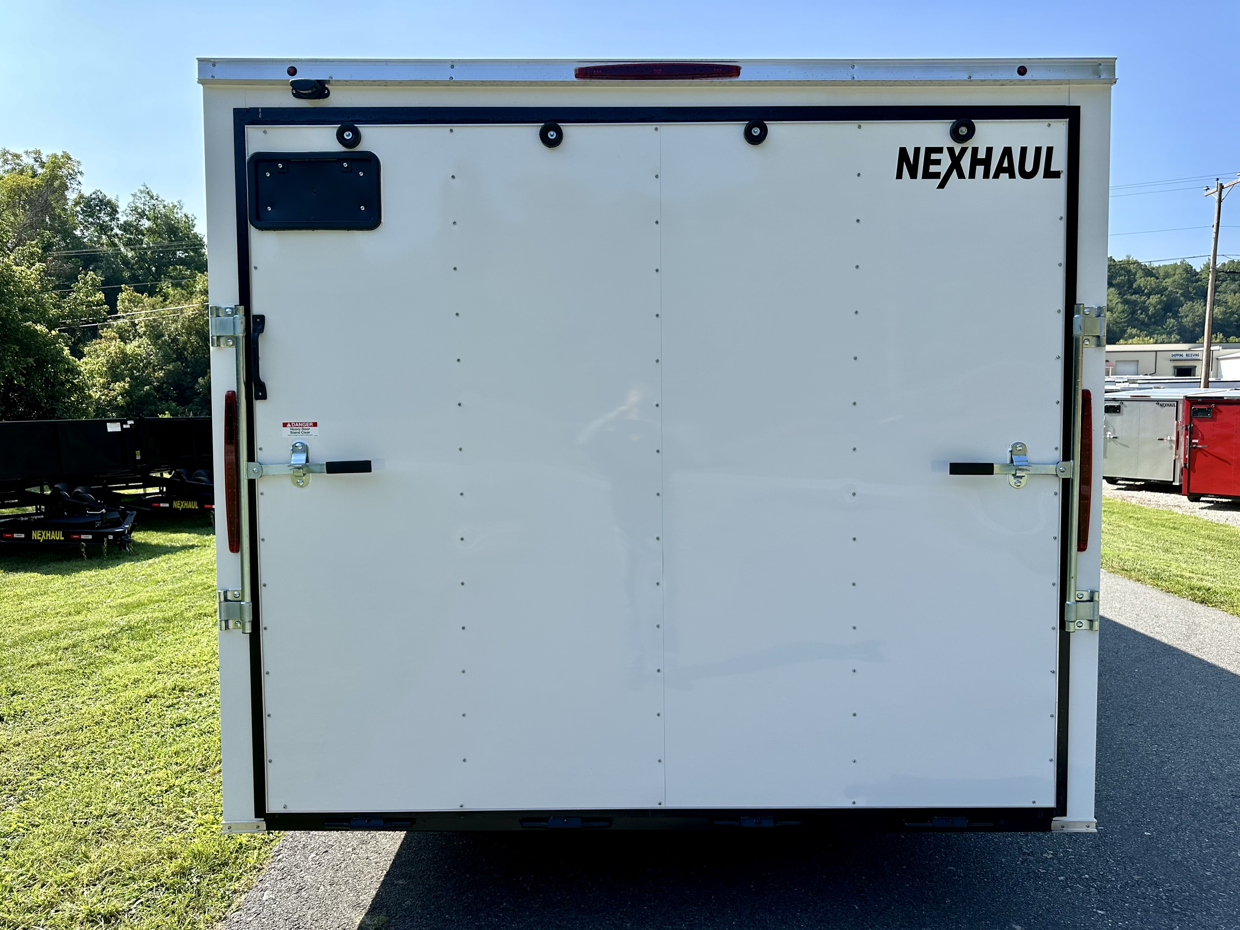 The Nexhaul Magnum Series Trailer is engineered to provide unmatched durability and performance for your toughest hauling tasks. Featuring two 5,200LB 4" drop brake axles with EZ Lube hubs, this trailer is built for reliability. It boasts an impressive 78" interior height, offering ample space for larger loads. The primed and painted frame is complemented by an aluminum tread plate stone guard and durable .024 gauge screwed exterior aluminum, ensuring longevity and protection. Inside, you’ll find sturdy 3/8" wood interior walls and 3/4" wood flooring, providing a solid foundation for your cargo. The one-piece aluminum roof with high-tech roof sealant ensures a weatherproof seal, while plastic side flow vents offer proper ventilation. The 32" x 72" side door with a bar lock, rear ramp door, and V-nose with tread plate allow for easy access and efficient loading. Additional features include a 7-way electrical plug, DOT-approved exterior lighting, radial tires, aluminum tread plate fenders, a 2,000LB manual tongue jack, a 2 5/16" coupler with safety chains, and steel wheels—making this trailer as reliable as it is versatile.
