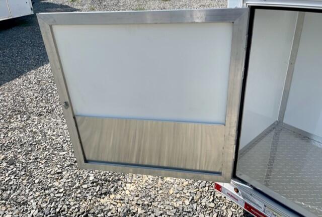 This trailer is designed to handle tough tasks and provide lasting performance. It features durable 3/4" engineered flooring with a 15-year warranty and stylish marble laminate flooring. Equipped with a 15,000 BTU A/C unit, it ensures comfort during hot weather. The 5200LB torsion axle upgrade, spread axle configuration, and Dexter torsion axles provide excellent towing stability, while electric brakes on all 4 wheels give you precise control. A one-piece aluminum roof and .030 screwed aluminum exterior offer long-lasting protection, and the aluminum wheels with a 6-lug pattern, along with aluminum fenders, give it a sleek, strong finish. Inside, you’ll find practical straight upper cabinets, an L-shaped base cabinet, and white vinyl walls and ceilings that contribute to a clean, professional interior. A 36"X36" generator door ensures easy access to your generator, and the LED lighting package, which includes (4) 12"X24" 12-volt LED panel lights and (2) 24" exterior 12V flood lights, provides ample illumination. The trailer also offers (3) 110V receptacles, (1) GFI 110V receptacle, (1) LED hookup light, and a USB port to power your devices. A V-nose and dove tail design make it easier to tow and access, while the 48" side door with flush lock ensures security and convenience. The 50 amp RV inlet with a 50 amp RV cord, 70 amp smart charger, and 12V battery with a box keep your power needs covered. Additional features include a 2-5/16" ball coupler, LED lights, a 7-way RV plug, safety chains, a spring assist ramp door with flap, and (4) D-rings installed in the floor for secure tie-down points. With 16" on-center floor, walls, and ceiling, this trailer is built for strength and durability, making it a great choice for a wide range of uses.