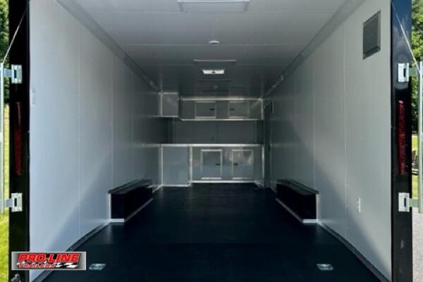 Nexhaul’s top-of-the-line race trailer is built for serious competitors who demand the best. This beast features 6000 lb torsion axles for a smooth, stable ride and a sleek .080 black engineered P/C screwless exterior with polished chrome and cast corners for a bold, high-end look. Inside, the white walls and ceiling contrast with the rugged rubber coin floor, while LED interior lights, 110 receptacles, and recessed LED lighting provide premium visibility. The upper and lower L-shape cabinets offer plenty of storage, and the 48” side door ensures easy access. Built for durability, it includes a one-piece aluminum roof, ATP ramp and ramp flap, and a dedicated generator compartment with an exterior door. With an 84” interior height, (4) recessed D-rings for securing cargo, radial tires with aluminum wheels, and (4) rear lights for loading, this race trailer is designed to handle the competition—on and off the track.