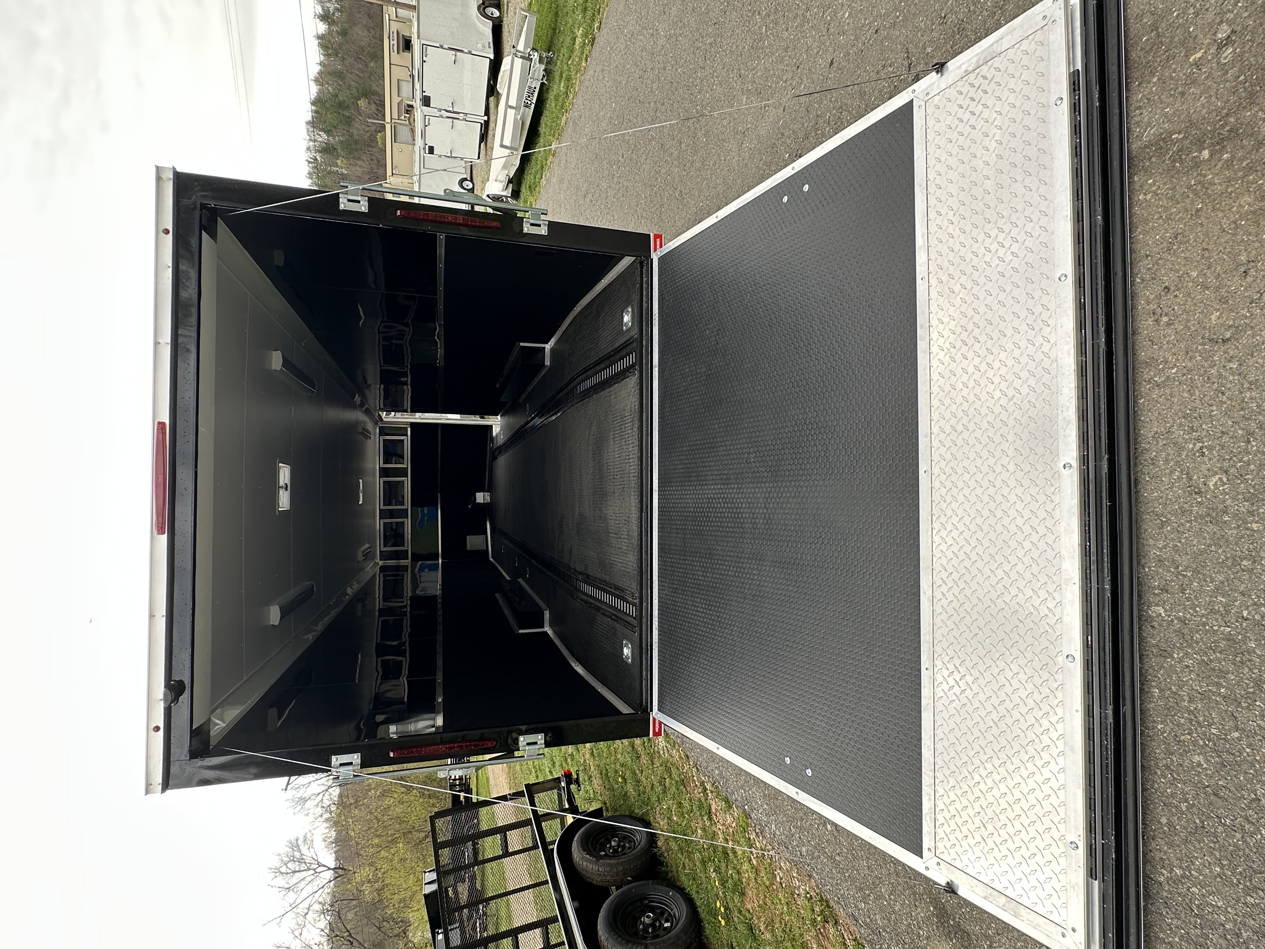 This Nexhaul 8.5x30 trailer is built for the bold, the fast, and the fearless—crafted to thrive under pressure and dominate at the track. With 3/4" engineered flooring backed by a 15-year warranty, spread axle design, and twin 6000LB torsion axles, it’s ready to haul serious weight with serious attitude. The rugged .030 semi-screwless aluminum exterior wraps around a frame featuring 16" on-center floor, walls, and ceiling, while a one-piece aluminum roof, aluminum corners, fenders, and wheels (design based on availability) bring the toughness full circle. Inside, you get a 78" interior height with black aluminum walls, 36" carpeted lower walls, and a clean white vinyl ceiling. The upper V-nose cabinets in black give you pro-level storage, while the coin rubber floor keeps things grippy and durable. Lighting is handled with an electrical package featuring four 48" LED ceiling 110V lights with wall switch, four 110V receptacles, a panel box, 30 Amp RV inlet and cord, plus (2) LED 12V interior lights. With 8 D-rings, a spring-assist ramp door with flap, electric brakes on all four radial tire-equipped wheels, and a 60" extended tongue, this rig pulls like a beast and hauls like a legend. Add in the 2-5/16" ball coupler, vented battery box, two manual roof vents, a 48" side door with flush lock, safety chains, and a V-nose with dove tail for sleek entry, and you’ve got a trailer that’s all business. Available in 8.5x16, 8.5x20, 8.5x24, 8.5x28, and 8.5x30 with heavier load capacity options, this machine is track-ready, race-proven, and built to be the baddest thing behind your rig.