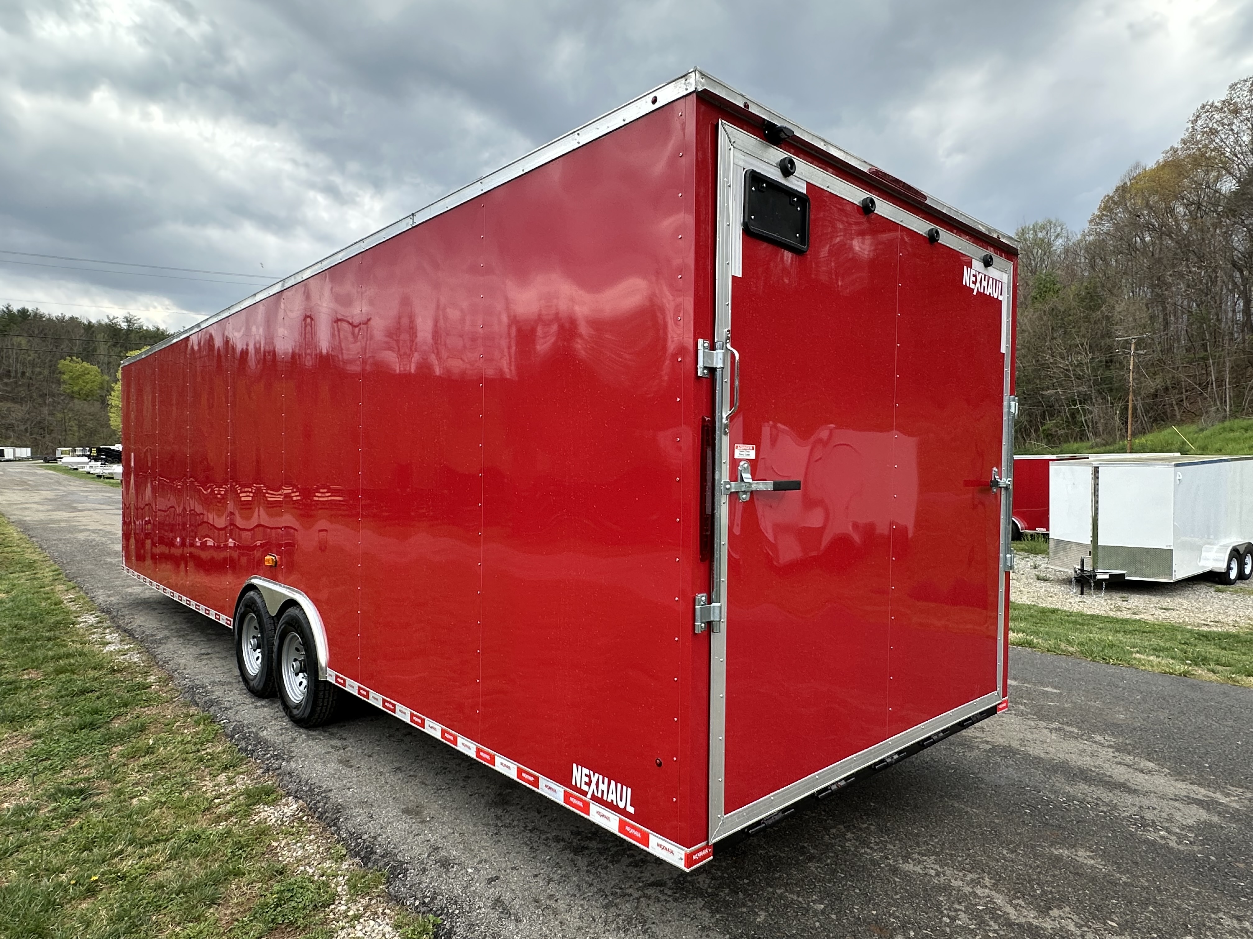 Buckle up—this Nexhaul 8.5x30 14K is built like a pit crew’s secret weapon. With a rock-solid 3/4" engineered floor backed by a 15-year warranty, it’s ready to handle the weight of your race rig, tools, and gear without breaking a sweat. Twin 7,000 lb EZ Lube axles and electric brakes on all four wheels keep you in control, whether you’re hauling down the highway or rolling through the infield. The .030 semi-screwless aluminum exterior, one-piece aluminum roof, and aluminum corners give it that clean, pro-level look, while aluminum wheels and fenders bring the style. It’s got a 48" side door with a flush lock for easy access, a spring-assist rear ramp with a flap for loading low-clearance machines, and a v-nose with dovetail to make sure you’ve got the clearance and aerodynamics you need. Inside, the 78" height, wood walls, and 16" on-center framing throughout the floor, walls, and ceiling mean it’s tough where it counts. LED lighting, a manual roof vent, and four floor-mounted D-rings keep everything secure and visible in the heat of the moment. Radial tires, safety chains, a 7-way RV plug, and a 2-5/16" coupler round it out for reliable towing. Whether you're hauling cars, bikes, or heavy equipment, this beast is ready to run in the big leagues. Need it smaller or stronger? It’s available in 8.5x16 through 8.5x30 with heavier load options if you’re packing extra muscle.
