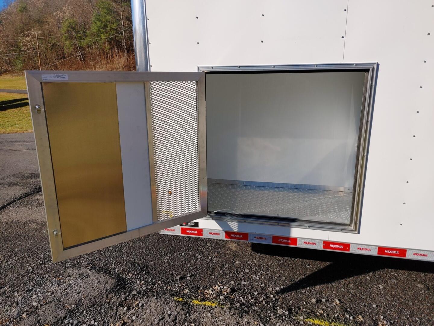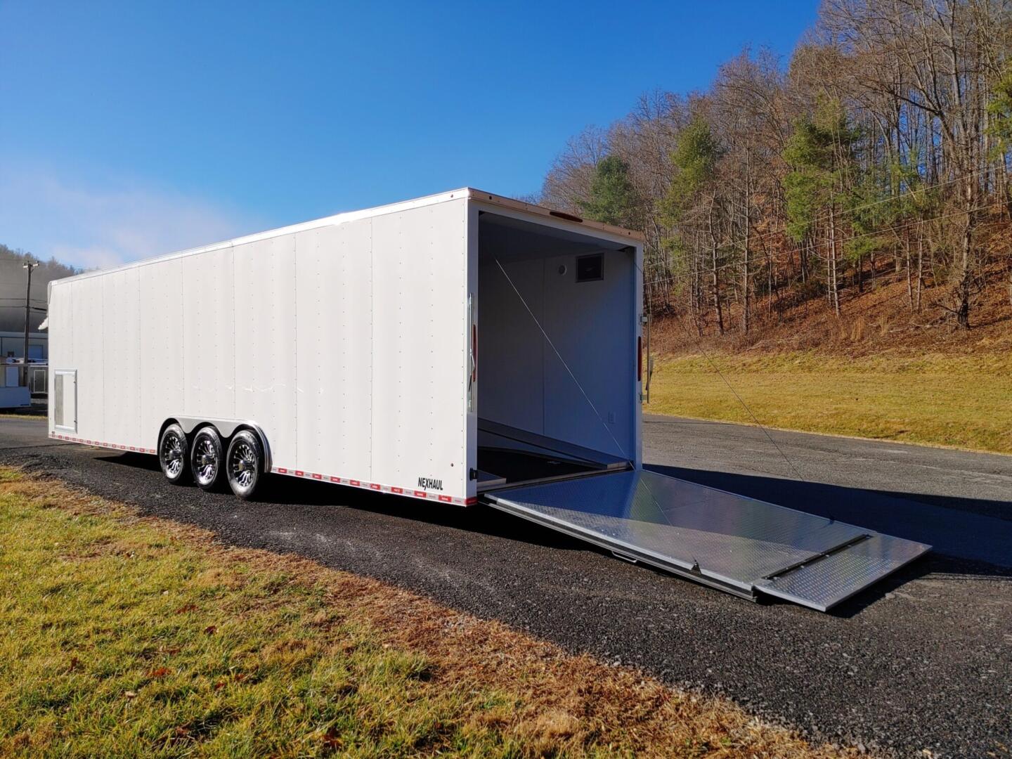 Look no further—this Nexhaul race trailer is an absolute beast with triple 6000 lb axles, built to dominate the track and turn heads while doing it. The .030 aluminum screwed exterior, bull nose front with cast corners, and chrome wrap give it a bold, aggressive look. Featuring a 48” flush-mount door, one-piece aluminum roof, aluminum spring cover, teardrop fenders, and 3” roof trim, this trailer is designed for both durability and style. The 18” rampovers (16’ long) and 12” extra height ensure easy loading and ample space for your setup. Fully wired and braced for AC, it includes (3) 12”x24” LED lights, (3) 110V receptacles, (2) exterior recessed lights, a 30Amp RV inlet, and a 30Amp RV cord for top-tier functionality. The straight base bottom cabinet with a 36”x36” generator door keeps your gear organized, while the 60” triple tube tongue, rubber coin floor, ATP ramp, and 12” ATP ramp flap ensure heavy-duty performance. With an aluminum wheel upgrade, LED exterior lights, rear door grab handles, and a manual roof vent, this trailer is built to make you the envy of the track!