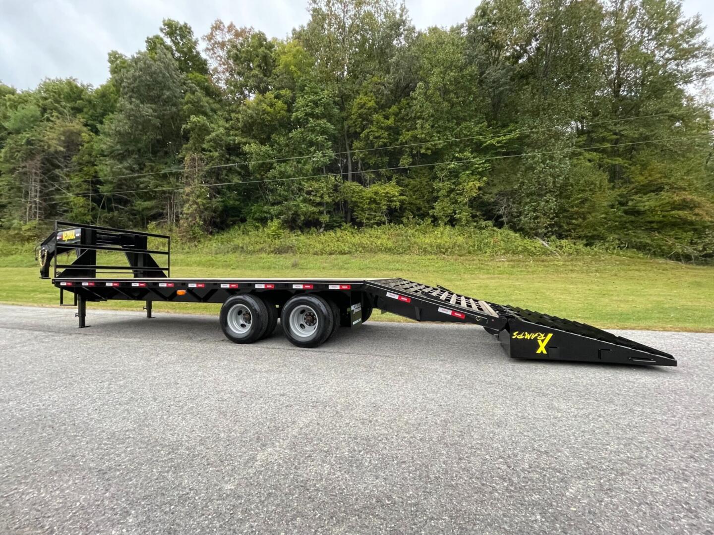The Nexhaul 8.5x35 22.5K Dual Deckover Gooseneck Equipment Trailer is built for heavy-duty hauling and is designed for the serious user who demands top-tier performance. Featuring X-Ramps that are 44" x 59.5" and equipped with a spring assist for easy operation, this trailer ensures secure and easy loading. It is supported by two 10,000LB Dexter oil bath axles, and the I-beam main frame provides a rugged, stable foundation. The 5' self-cleaning cleated dove tail and 3" channel crossmembers ensure maximum strength and durability. Additional features include mud flaps, a spare tire holder, side steps, rub rail, stake pockets, and a lockable chain basket for convenient storage. Powder coating enhances its resilience, while the steel wheels and 16" radial tires ensure long-lasting performance. The 2" treated flooring provides added durability, and the dual 12K drop leg jacks ensure easy leveling and stability. This trailer is 102" wide and is equipped with spring suspension for smooth towing. For safety, the trailer includes DOT reflective tape, side turn flashers, and DOT-approved lighting, as well as electric brakes with a breakaway system. The adjustable 2-5/16" coupler and 7-way RV plug complete this heavy-duty, professional-grade trailer, perfect for those who need serious hauling capability.